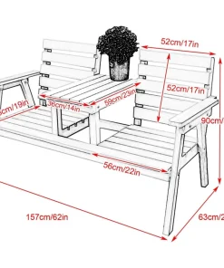Rain Seat Outdoor Garden Bench with Middle Table and Umbrella Hole Outdoor Wooden Bench Garden Chair