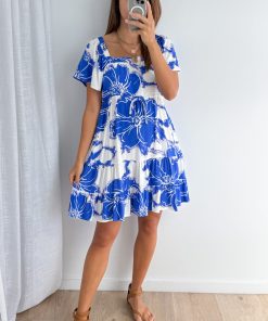 Nell Dress – Blue White Flower
