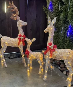 Life Size LED Lighted up Wire Family Reindeer 3pcs Christmas Reindeer Ornaments Outdoor Christmas Garden Decorations