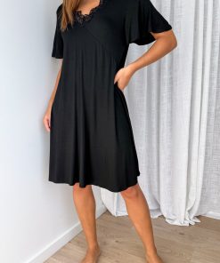 The Comfiest Lace Trim Nightie – Black