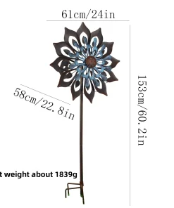 Gray Plastic Windmill Ornament with Flower Shape for Garden Lawn Courtyard Decoration-Waterproof Outdoor Art Deco Design
