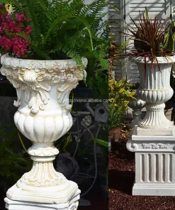 European-Style Retro Garden Ornament Embossed High-Leg Flowerpot for Villa Courtyard Roman Column Outdoor Home Decor High