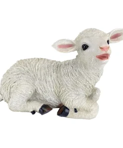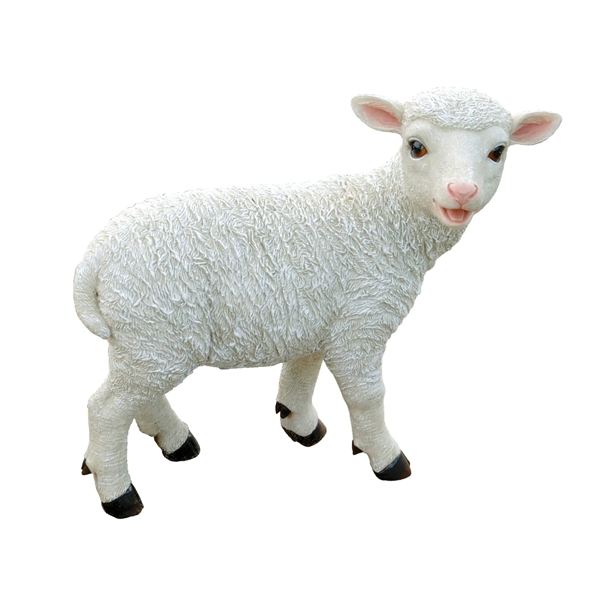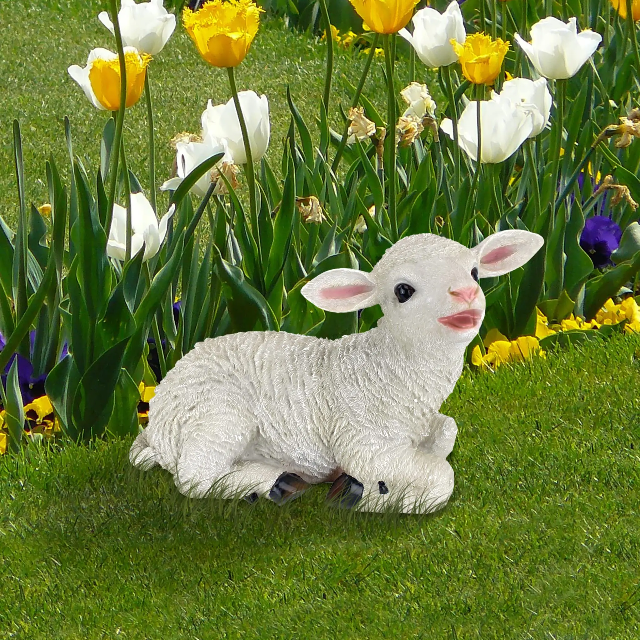 15 Inch Long Yorkshire Lamb Garden Statue Resin with White Finish Farm Animal Ornament for Fountain Water