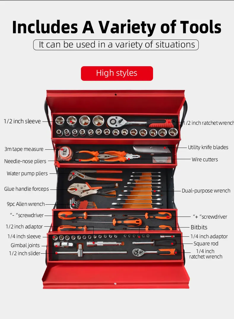 Be the first to review “85-Piece High Quality Tool Set Home Application Including Sockets Screwdrivers Wrenches Pliers Drills Hand Tools Packaged Box” Cancel reply