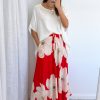 How pretty is this! The print is stunning, the fabric is really nice and feels really expensive, and the waist is elastic and adjustable and we also love the pockets! It truly is lovely.