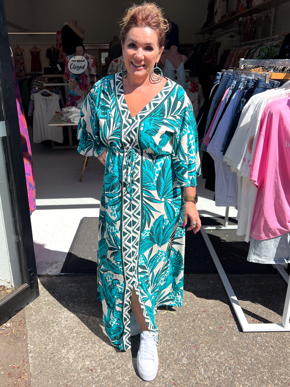 Simple and easy and lovely colours, even the sleeves are pretty. Elastic and a drawstring under the bust, it falls beautifully.