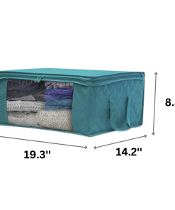 Measures approximately 19″ L X 14″ W X 8″ H. Use for seasonal clothing, blankets, linens, holiday decorations, toys, photos, baby clothes, etc.