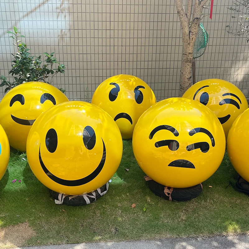 Customizable Large Outdoor Stainless Steel Cartoon Face Sculptures Luxury Event Decor Balls Round Art Decorative Balls