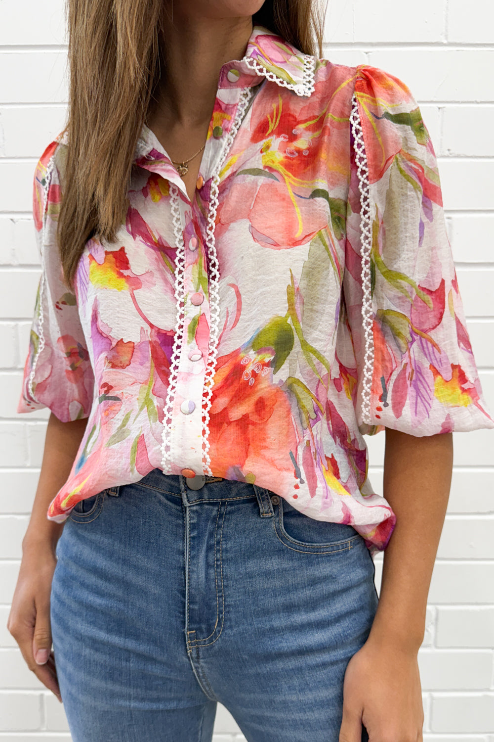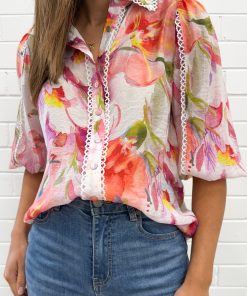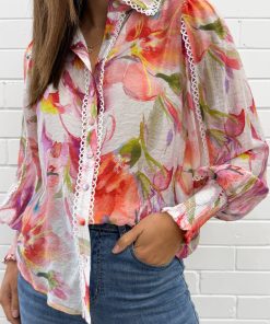 Be the first to review “Delilah Shirt – Peach Purple Floral” Cancel reply