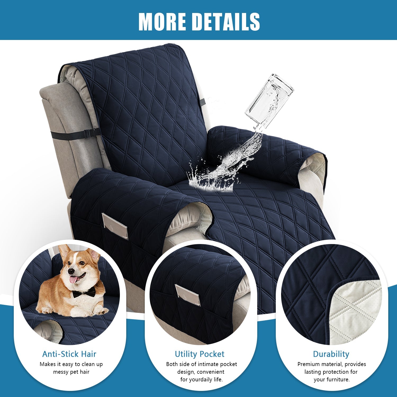 🌷【100% WATERPROOF FABRIC】We use high-grade fabric to undergo waterproof treatment by coating a waterproof layer on the top, to ensure our recliner chair cover provides 100% waterproof and leak-proof features. This new waterproof feature (can be tested), is a great way to protect your sofa from any drinks, spills, daily wear and tear. Making sure your furniture are clean at all times.
