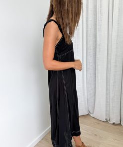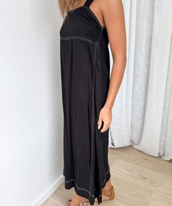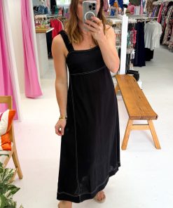 This dress is just an easy throw on. The straps are thick and stretchy, there’s some stretch in the back of the bust, and the length is good. The contrast stitching gives it a polished look, it’s just a bit of fun detail. Easy and looks good.