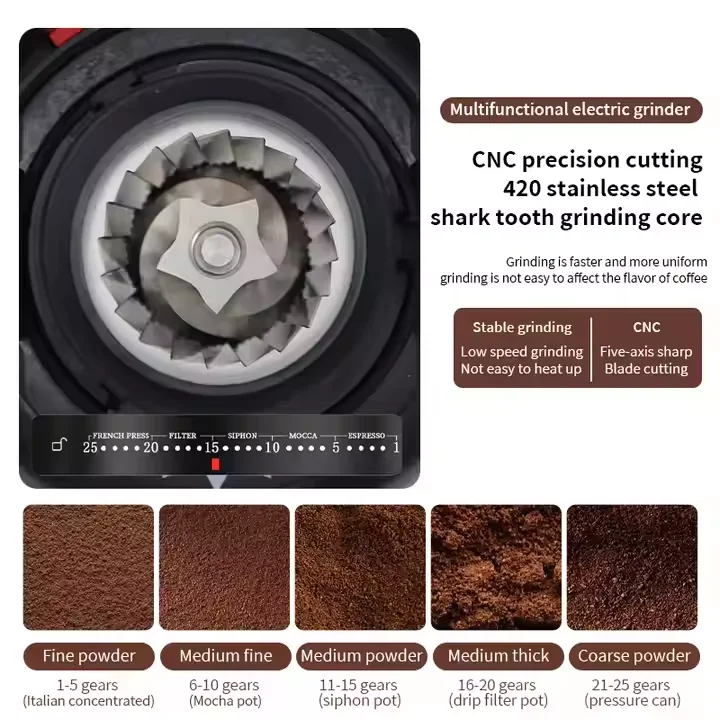 Electric Coffee Bean Grinder Coffee Bean Mill Pour-over Espresso Powder Maker Household Small-sized Adjustable in Fineness