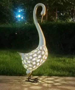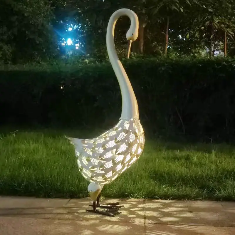 Europe Style Garden Courtyard Iron Animal Swan Ornaments Animal Metal Solar Light Statue Outdoor Lawn Decoration