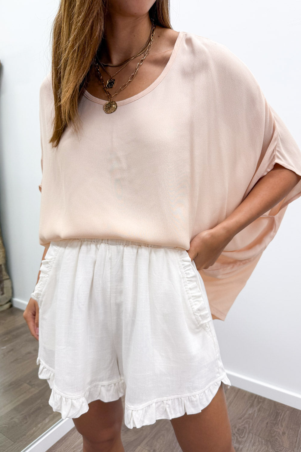 I’m fussy with shorts, heaps fussy, and I really like these. They’re a good length, the waist is elastic, and the frill is heaps cute – even the pockets have frills on them!