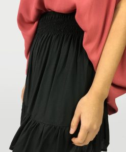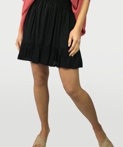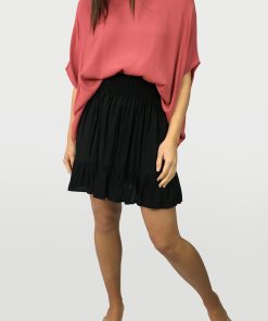 One of our favourite mini skirts EVER, I think because it’s not too mini. Featuring a thick elastic waist, you can wear it as high or as low as you like. So good.