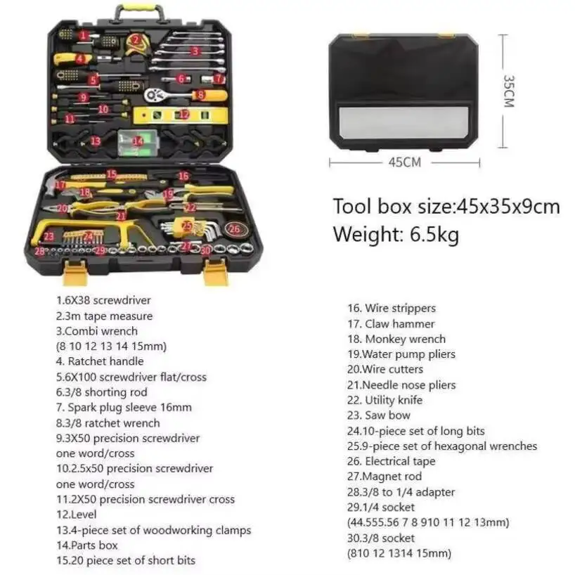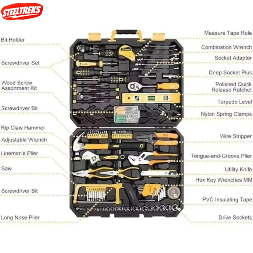Hardware Tool Set Chrome Vanadium Steel Durable Mechanical Multifunctional Hand Box Household Hardware Kit Professional Tool Set