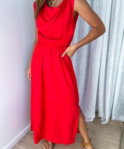 So incredibly flattering, the way this sits and falls is utter perfection. You can wear it on and off the shoulder, and it has elastic up the top at the back. And it has pockets. The fabric has a linen feel, and it truly looks so, so nice on all shapes and sizes.