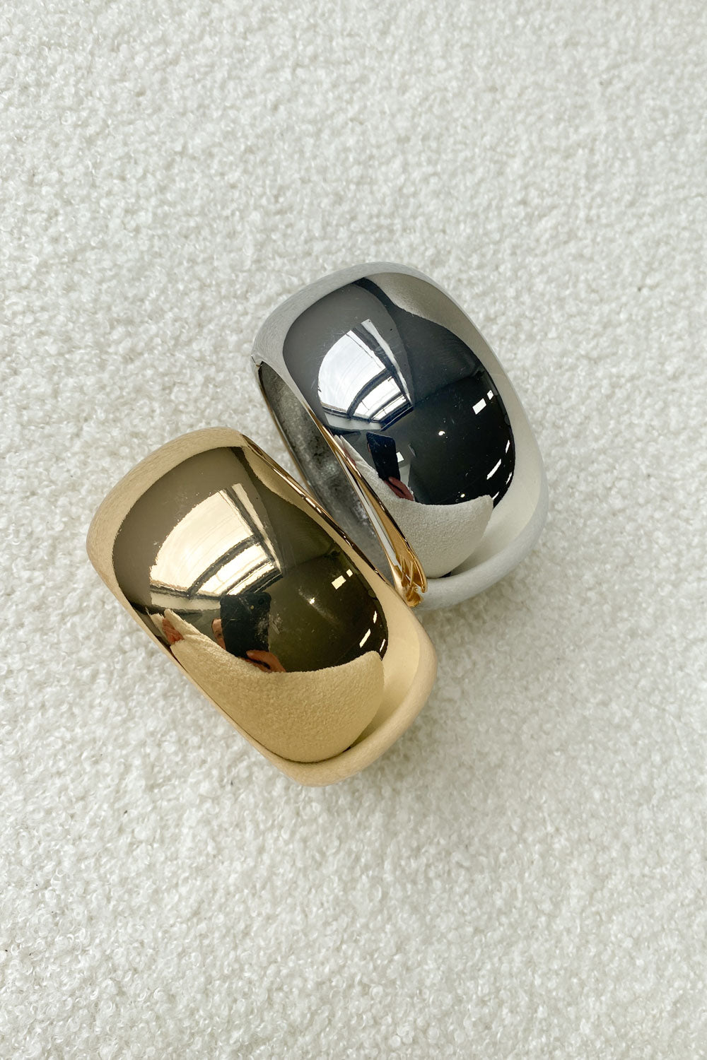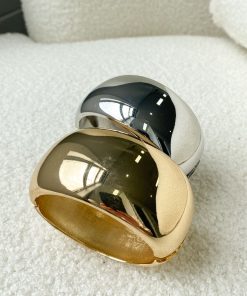 A classic, cuff style bangle that opens with a hinge so super easy to wear. Wear it stacked with a watch and some other bracelets, or on it’s own as a clean metallic statement piece.