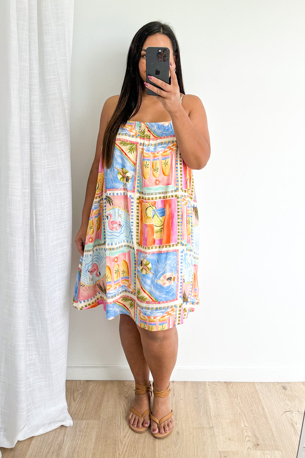 Light and easy and cute and floaty and flowy and just good. Pockets, adjustable straps and the print is so fun. It falls perfectly and it really is just so, so nice.