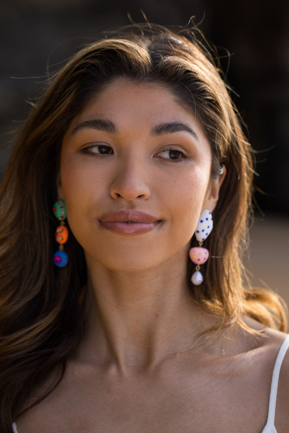 So much fun, we love these mixed multicolour danglies! Colourful with coloured stones, they’re gorgeous day and night.