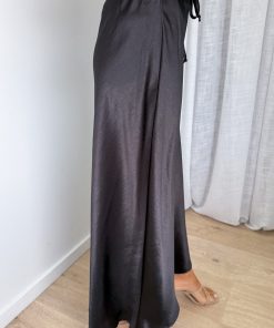 Silky and sexy, it falls beautifully, fits beautifully, and it has an elastic waist with a drawstring. A really good length, and so good with any top, even an oversized tee. Love.