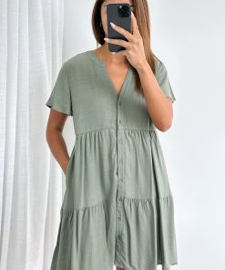 Nice and easy throw on. The shape is cute, the sleeves are pretty, the buttons are functional, the neckline is lovely, and it has pockets 🙂 It’s a good length too – not long but not too short.