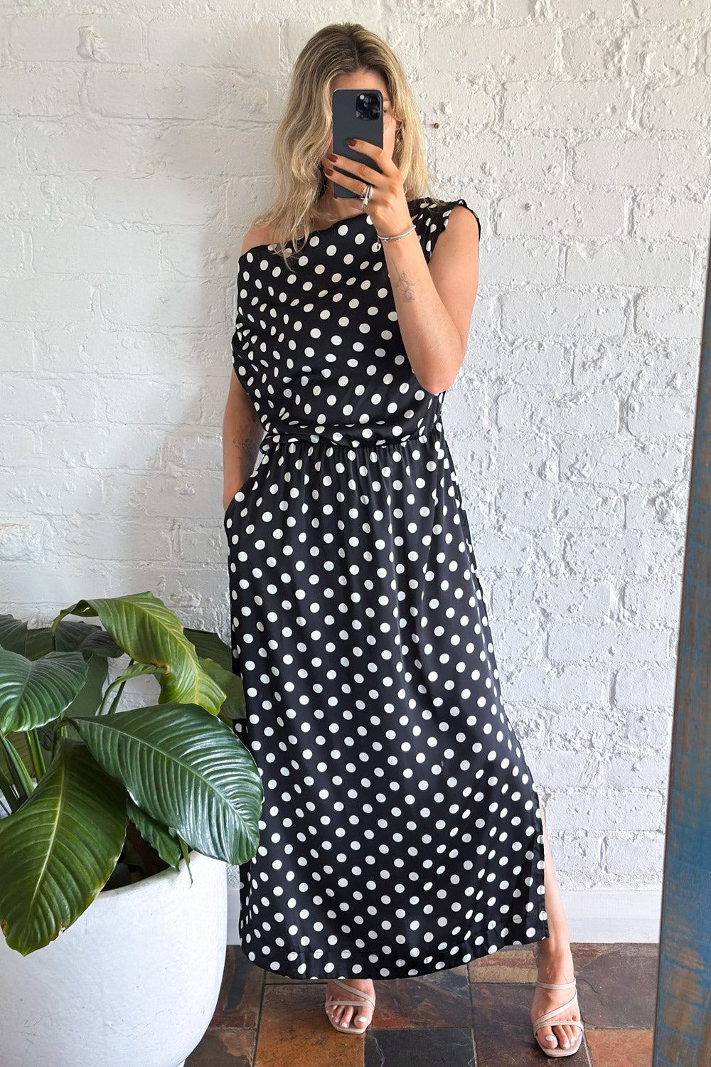 So incredibly flattering, the way this sits and falls is utter perfection. You can wear it on and off the shoulder, and it has elastic up the top at the back. And it has pockets. The fabric has a soft feel, and it truly looks so, so nice on all shapes and sizes.