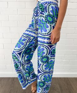 Loose with an elastic waist, these are so, so pretty. The fabric is really nice, and because of the elastic waist you can wear them up higher or down lower. We also have a matching shirt in case sets are your thing, and it is divine.