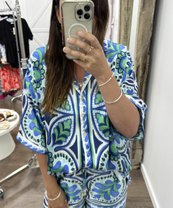 Oversized and fricking BEAUTIFUL, the shape of this is amazing, the sleeves are amazing, and the buttons are really nice. And the PRINT ❤️ We also have matching pants in case sets are your thing, and they are divine.