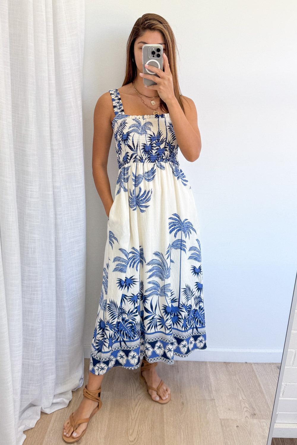 So pretty, easy, light and breezy, the shape of this one and the way it falls is simply beautiful. Stretchy, thick straps and shirring at the bust means you can get it to fit just right. And it has pockets 😊