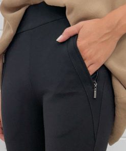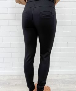 Kind of like a Ponte pant, the fabric is thicker and really suckerinery, they feel soooo good on, so good. They have functional pockets at the front and back, they’re just so freaking good. And they’re super stretchy. And they’ve got the thick band on the waist which sucks you in too!