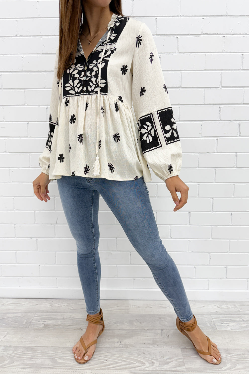 Easy to wear, and easy to style. Tuck it in, wear it loose, push up the sleeves —whatever suits your mood. The boho print makes a statement, and the flowy fabric falls beautifully.