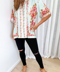 Be the first to review “Marbella Tile Shirt – Blue Blush Floral” Cancel reply