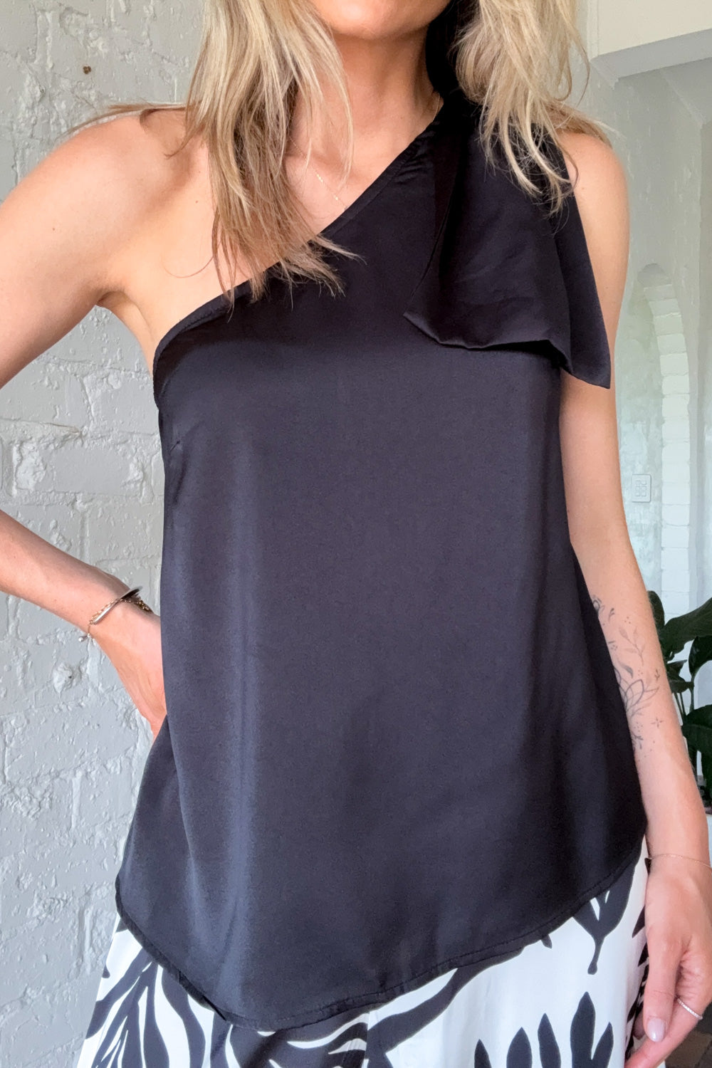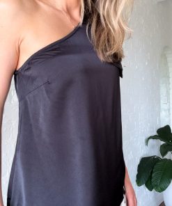 Sexy yet flattering and not fitted, it looks stunning on all shapes and sizes. One shoulder with gorgeous detailing on the shoulder, it can be worn reverse if you’d rather your other shoulder be out instead. There is lots of room in the top itself, so it’s fine even if you have a larger tummy. It’s lovely.