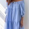 A simple dress with floaty sleeves and elastic under the bust, creating a flattering shape. The length is good, and the soft, lightweight fabric drapes really nicely – and it’s comfy!