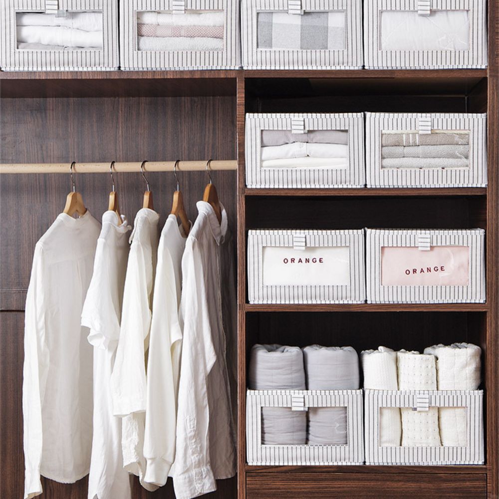 The front transparent window makes the clothes inside the clothes organizer easy to see at a glance. Soft material folds up when not in use, saving closet space.