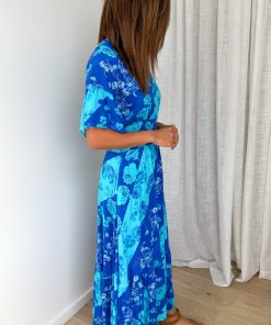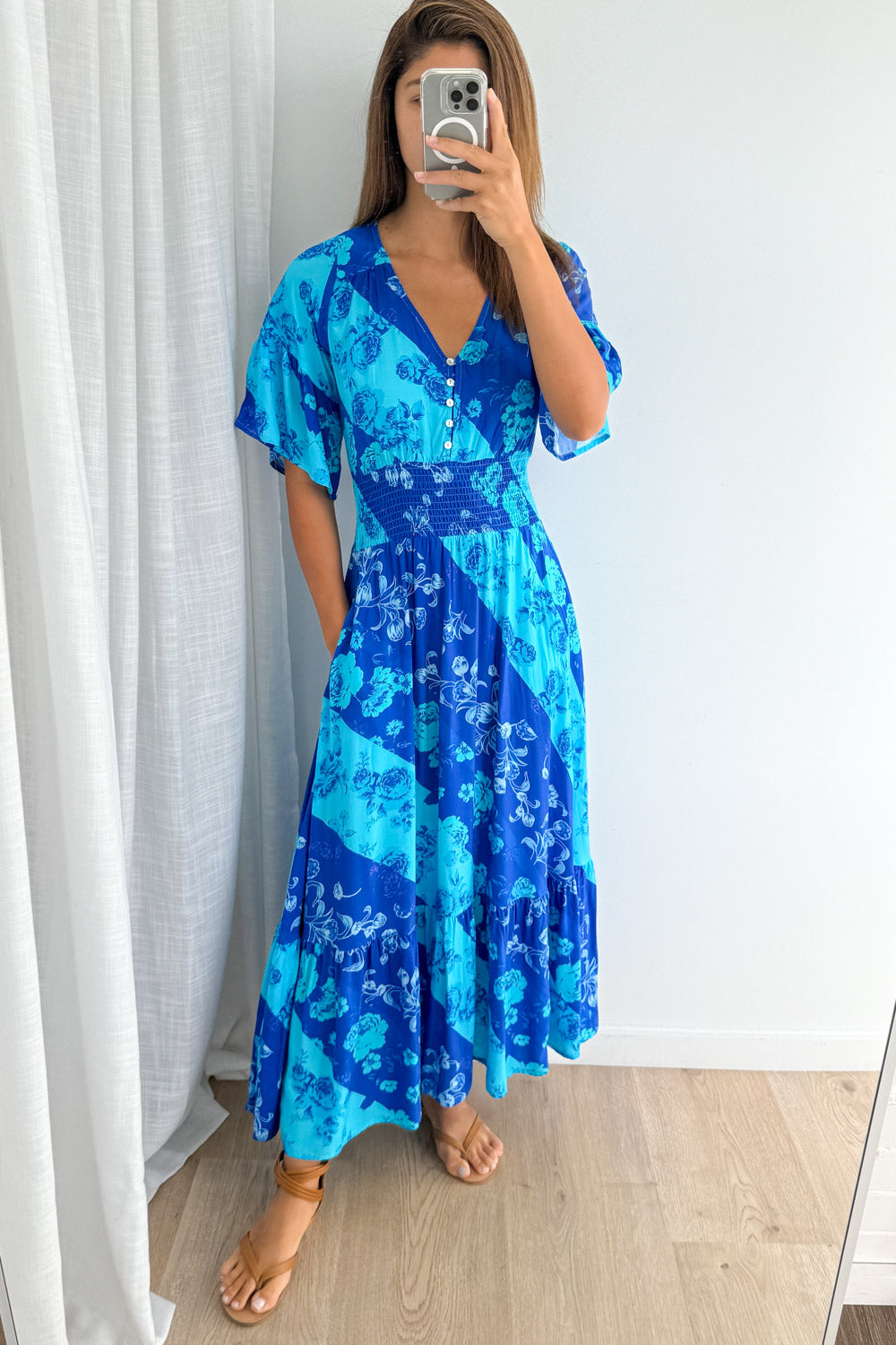 An effortless throw-on that’s a little bit boho yet totally wearable. Elastic rouching around the waist, and the sleeves are fluttery and nice. The length is good, the dress itself is lovely and flowy, and it feels nice on.