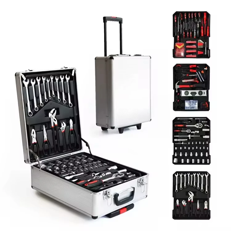 New Household Pull Rod 499 Piece Combination Tool Set Silver Aluminum Hand Tool Box