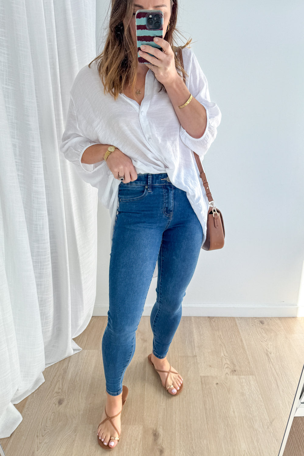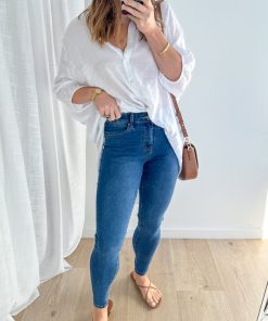 Quite possibly one of the best pairs of blue skinny jeans you have ever, ever owned, no joke. That sounds fake doesn’t it, but seriously. They are SO stretchy. They are flattering – they kind of suck that bit up the top of your thighs in which is AWESOME.