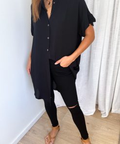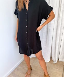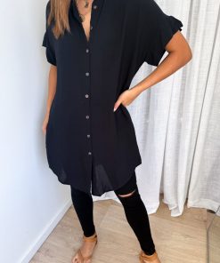 The perfect shirt dress. An easy throw on which is loose yet has shape, with functional buttons all the way down, pockets, and it scoops down lower at the front at back and comes up slightly at the sides. It’s soft, light and just so easy.
