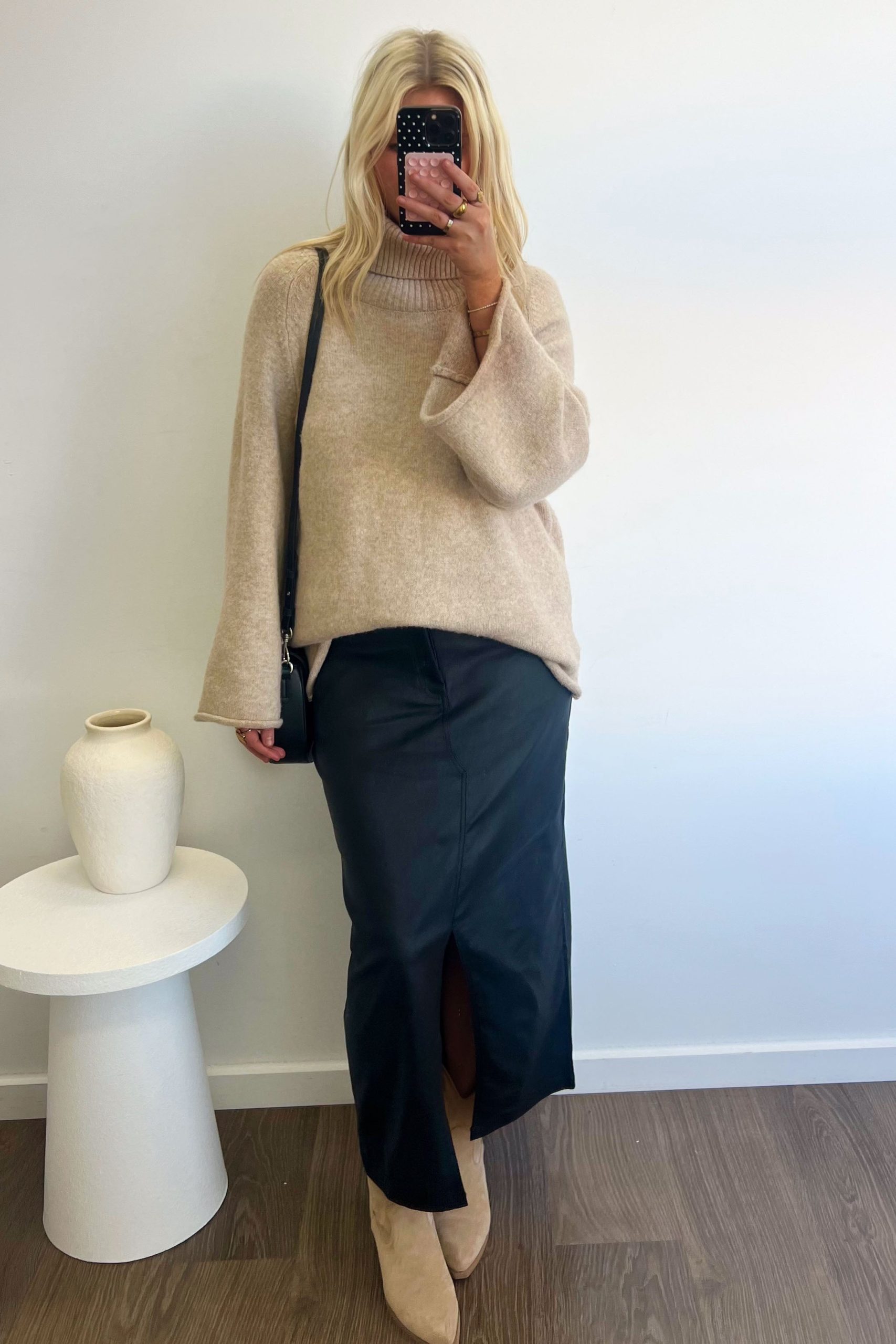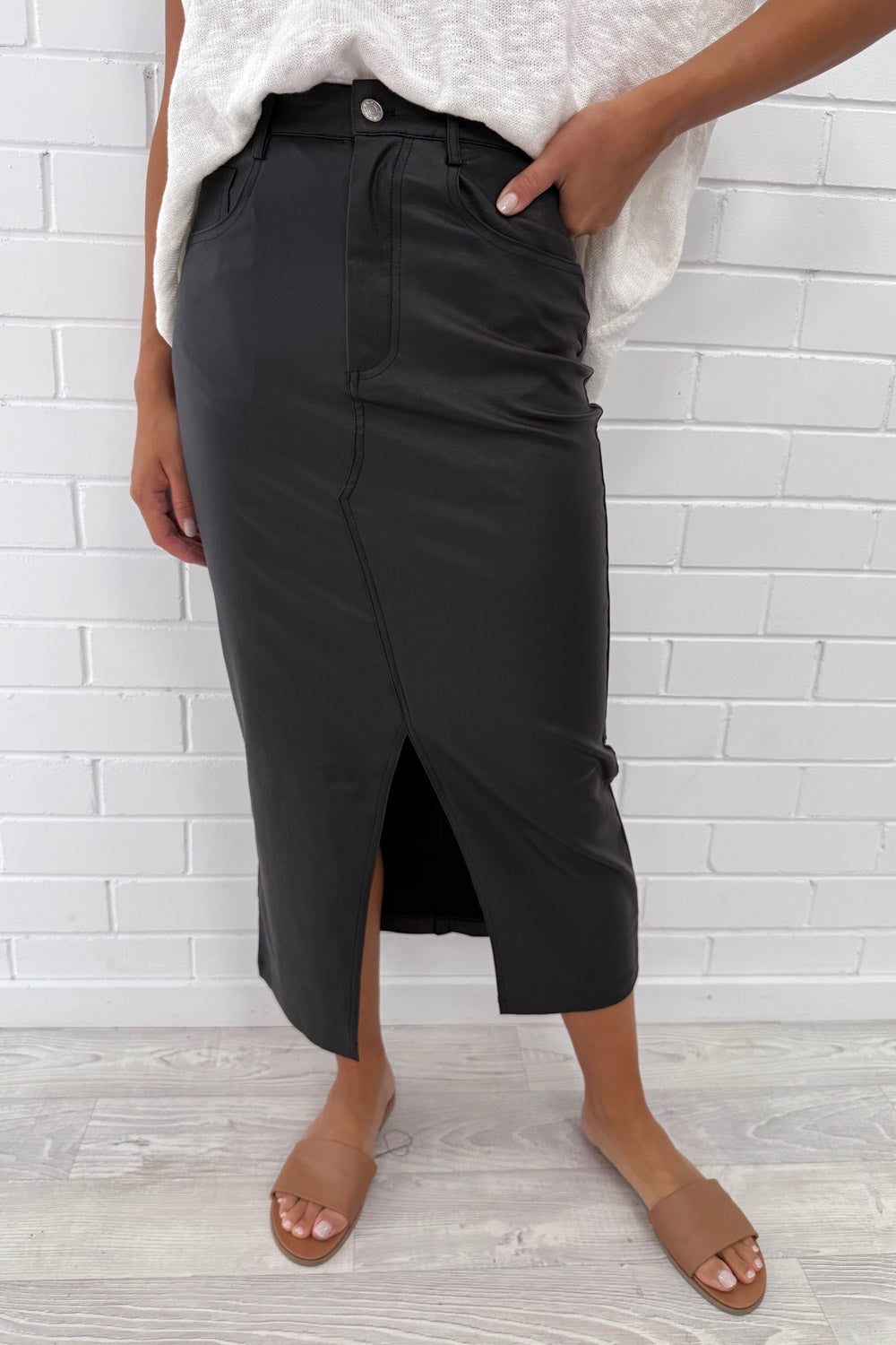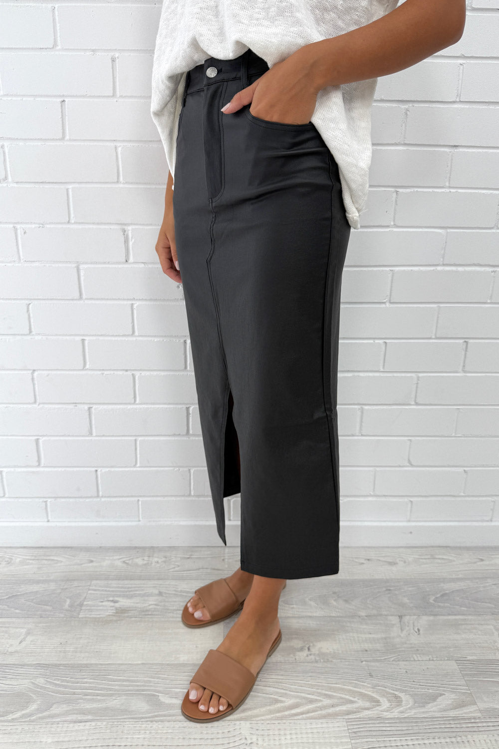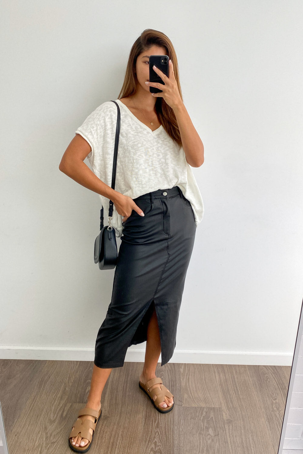 A sexy yet totally functional wet look skirt, WITH a split, so you can actually walk and do all the things in it. Stretchy too.