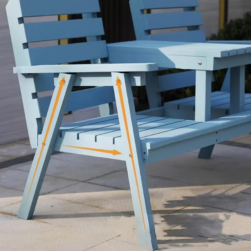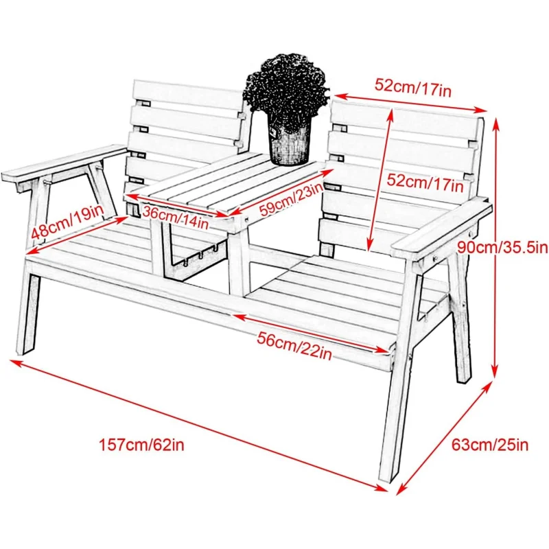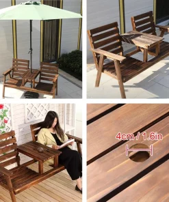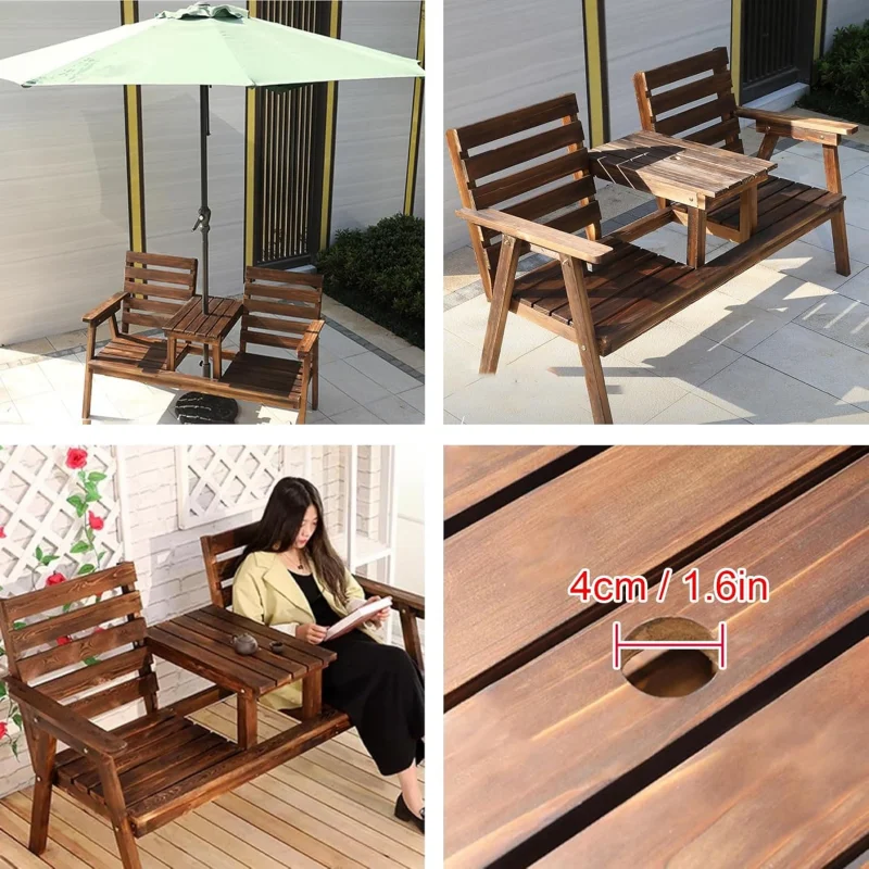 Rain Seat Outdoor Garden Bench with Middle Table and Umbrella Hole Outdoor Wooden Bench Garden Chair