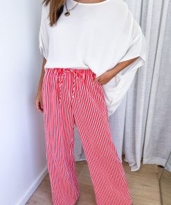 These are DELICIOUS! The stripe is perfection, the length and shape of the leg is good, and the elastic waist has the right amount of stretch. They are SO CUTE!!! And we have a matching shirt – matching colours but a different stripe, and they look so, so cool together.