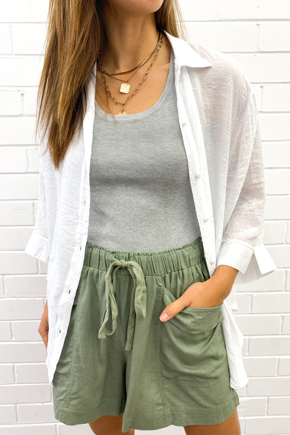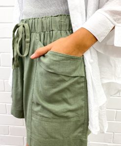 Loose and light with oversized feature pockets, the elastic waist ensures they sit nicely, and the length is good.