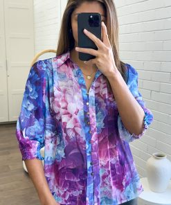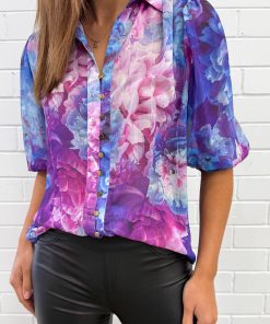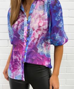 Soft and drapey with lovely feature buttons, the sleeve is 3/4 length with elastic at the cuff. Lovely for work, weekends, and everything in between. So pretty and such a lovely shape, we love the colours, and just how pretty it looks.