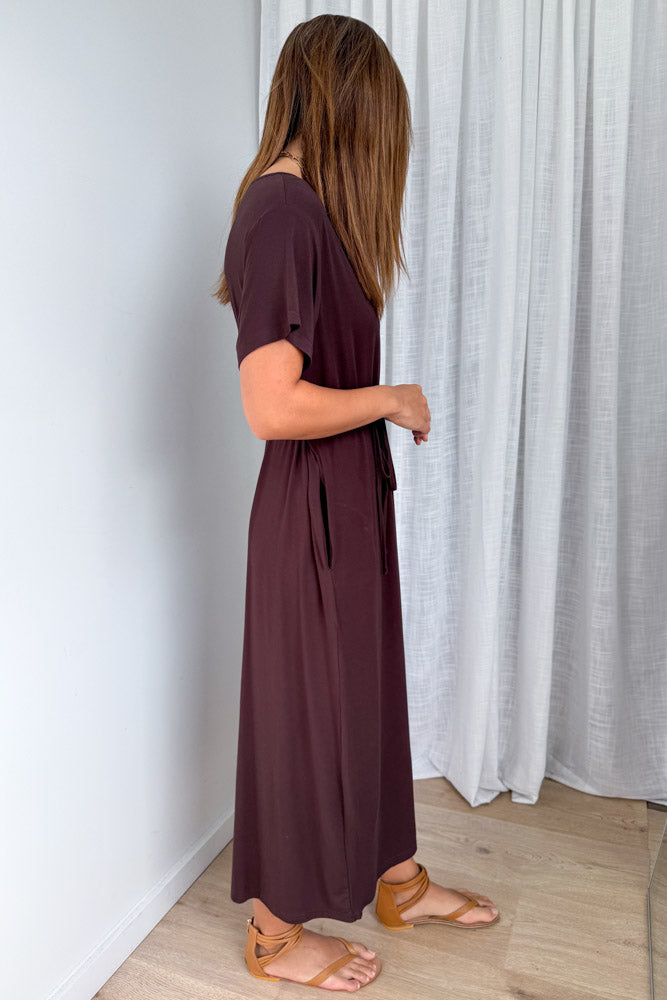 THIS DRESS IS STUNNING!!! So, so beautiful. The cut, the way it falls, the way it floats around you as you walk, and the simplicity of it. The sleeves are gorgeous – a good length and somehow pretty and the belt is removable belt. We LOVE it.