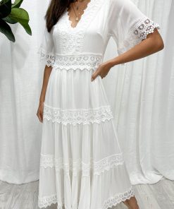 Due to popular request, we now have a STUNNING maxi version of our STUNNING Solana Dress, and it is HEAVEN. The shape is beautiful, the lace detail is just SO PRETTY, and it feels like a dream on.