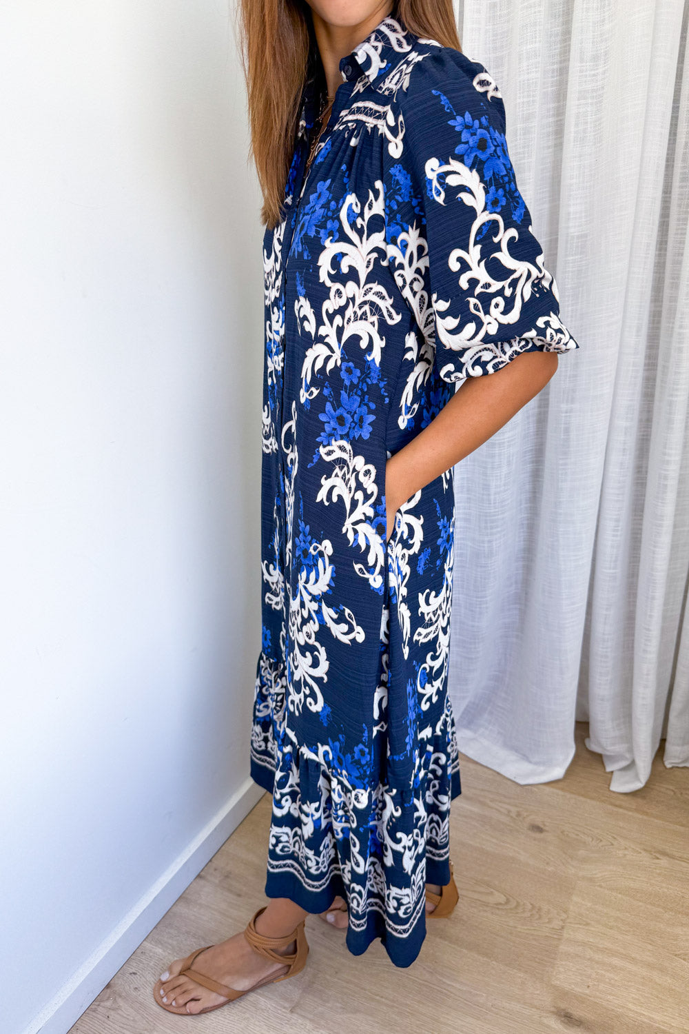 Such a nice simple dress that looks good on everyone. The shape is perfection – it’s literally a shirt dress that just drops. Light, easy, breezy, comfy, functional buttons, pockets, removable belt, good arm allowance and a nice sleeve, it feels like you’re wearing nothing.