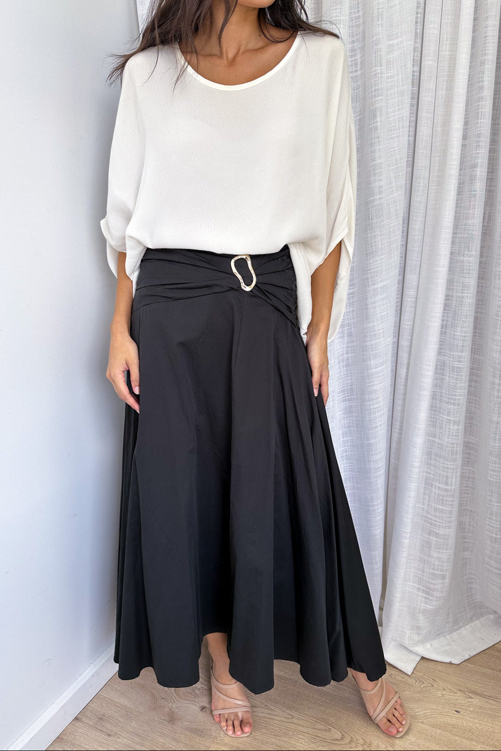 This skirt is so flattering with that soft drape through the waist and the way it flows out into the most beautiful, shape. The detail at the waist just elevates it and gives it that little something extra without even trying.