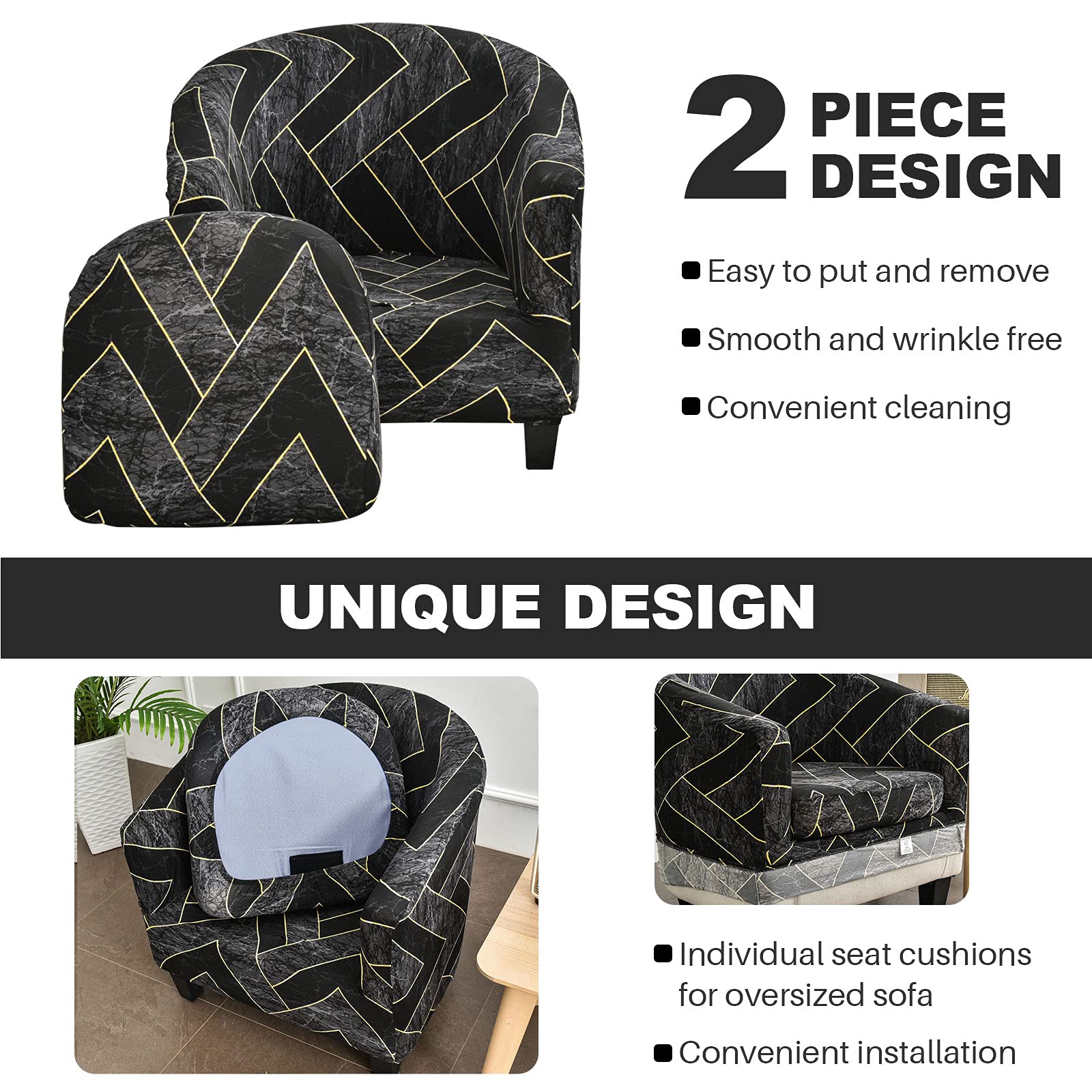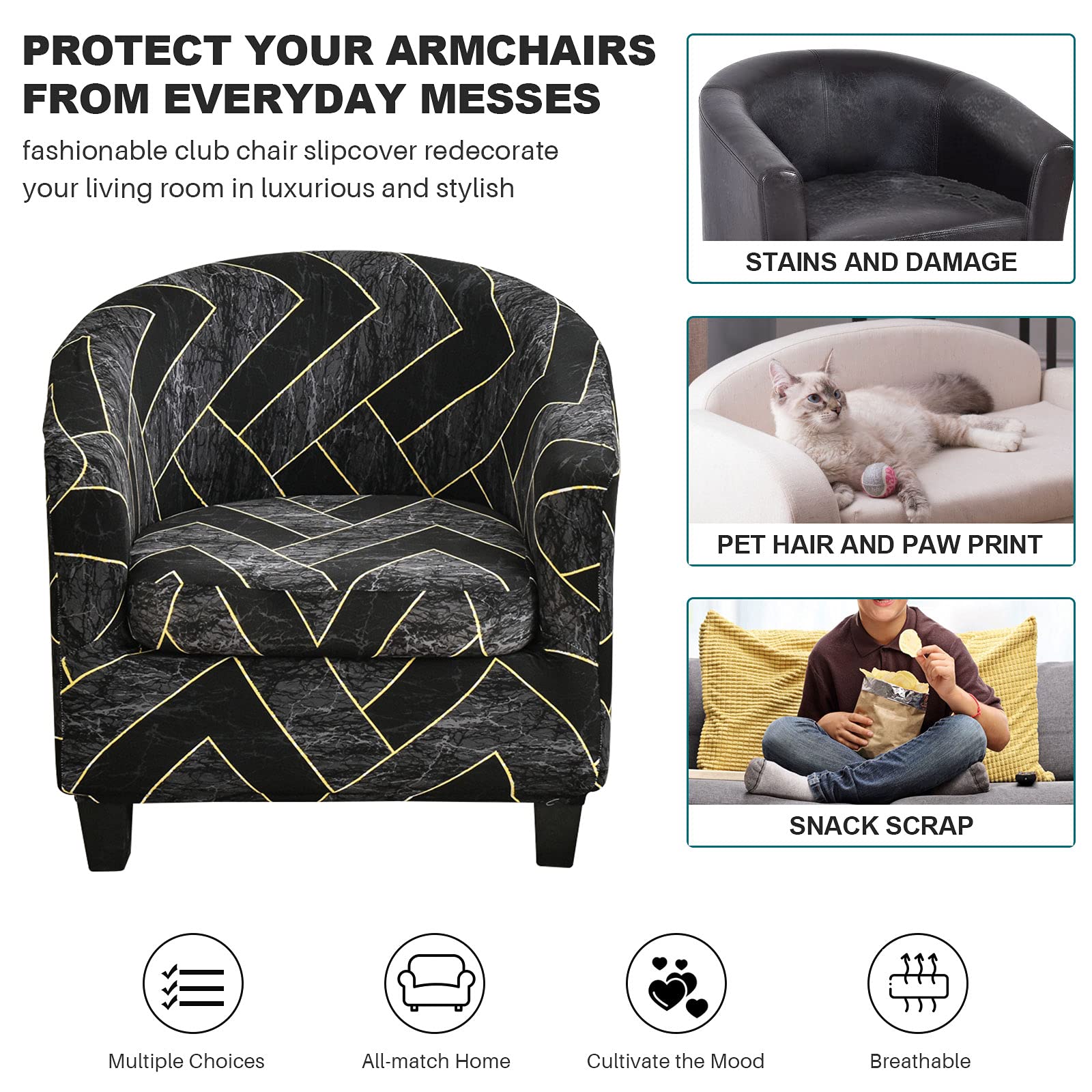 Durable fabric cloth covers are made of polyester and spandex. It makes the armchair slipcover very comfortable and breathable with high stretchy and durability. Gives your club chair a new rejuvenated look.